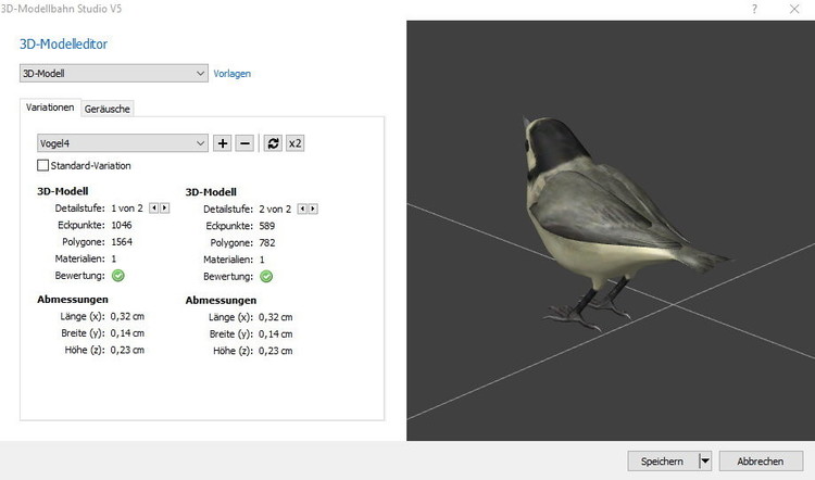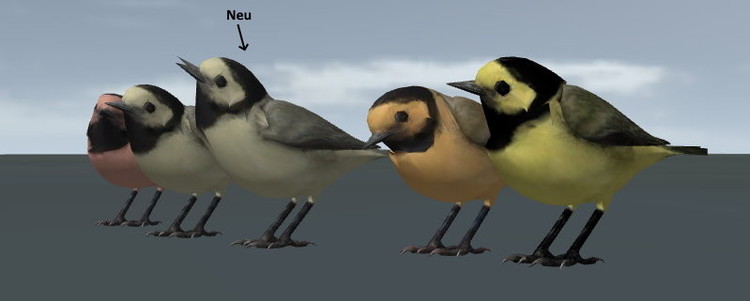 Hallo alle zusammen, da Euch die Vögelchen so gefallen ist noch eins dazugekommen mit offenen Schnabel. Die Modelle haben in der LOD Stufe 0 / 1564 Polys und in der LOD Stufe 1 / 782 Polys. Ich hoffe dass es so einigermaßen in Ordnung ist und man dann auch mehrere Vögel auf die Platte stellen kann. Gruß FeuerFighter