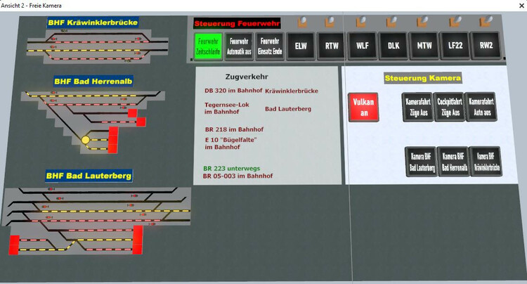 21. Hallo alle zusammen zu Weihnachten noch ein kleines Update meiner Anlage. Es wird wohl noch dauern bis sie fertig ist aber es macht Spass daran zu arbeiten. Es fehlt noch an Landschaftsgestaltung und an Menschen und und und.... Gruß FeuerFighter Automatische Kamerafahrt. Auch hier hat sich noch etwas getan. Die Kamerafahrt läuft jetzt automatisch ab wenn sie aktiviert wird und genauso die Feuerwehr. Beim Zugverkehr wird angezeigt welcher Zug sich wo befindet. Bahnhof Bad Lauterberg Feuerwehr im Einsatz