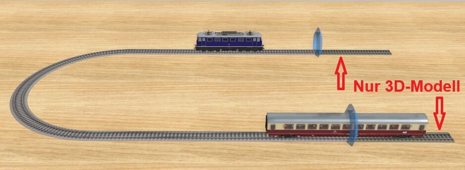 Hallo @Leslie, wie die Vorredner schon ausgeführt haben, kannst Du an ein Gleis-Ende mehrere Gleise andocken mit dem Ergebnis, dass für einen auf einem Gleis an diesem Punkt ankommenden Zug mehrere Fahrspuren für die Fortsetzung seiner Fahrt zur Verfügung stehen. Wenn nicht wie bei einer Weiche immer nur eine weiterführende Fahrspur aktiv ist und nicht wie bei einer Straßenverzweigung im Fahrzeug das Fahrziel eindeutig festgelegt wurde, kann das Modellbahn-Studio in dieser Situation nicht eindeutig feststellen, welches die "richtige" weiterführende Spur ist, und wählt daher "zufällig" eine davon aus. Nun besitzt auch das Portal eine "weiterführende" Fahrspur, die über die "Portal-Verbindung" zu einem Partner-Portal führt, an dem der in das erste Portal einfahrende Zug wieder austritt. Deshalb kann der Zug seinen Weg durch das Portal zum verbundenen Portal fortsetzen, wenn hinter dem Portal kein weiteres Gleis angeschlossen ist. Hat man dort jedoch ein weiteres Gleis angedockt, existieren an diesem Punkt 3 aufeinander zulaufende Fahrspuren (zwei von den Gleisen, eine vom Portal), was zu dem oben beschriebenen Konflikt führt. Es ist daher durchaus möglich, dass der in das Portal einfahrende Zug anstatt aus dem verbundenen Portal wieder auszufahren auf den angeschlossenen Gleisstummel fährt und folglich an dessen Ende stehen bleibt. Ebenso könnte auch ein vom anderen Portal her (also aus der Gegenrichtung) eintreffender Zug hier "falsch" in den Gleisstummel abbiegen. Beides ist nicht gewollt. Wenn Du aus optischen Gründen (damit die Züge hinter dem Portal nicht "in der Luft schweben") trotzdem ein Gleisstück andocken möchtest, kannst Du diesem anschließend im 3D-Modelleditor die Kategorie "Nur 3D-Modell" zuweisen. Damit hast Du die "Fahrspur" dieses Gleises entfernt, sodass die Fortsetzung der Zugfahrt durch das Portal zum verbundenen Portal wieder eindeutig ist. Viele Grüße BahnLand