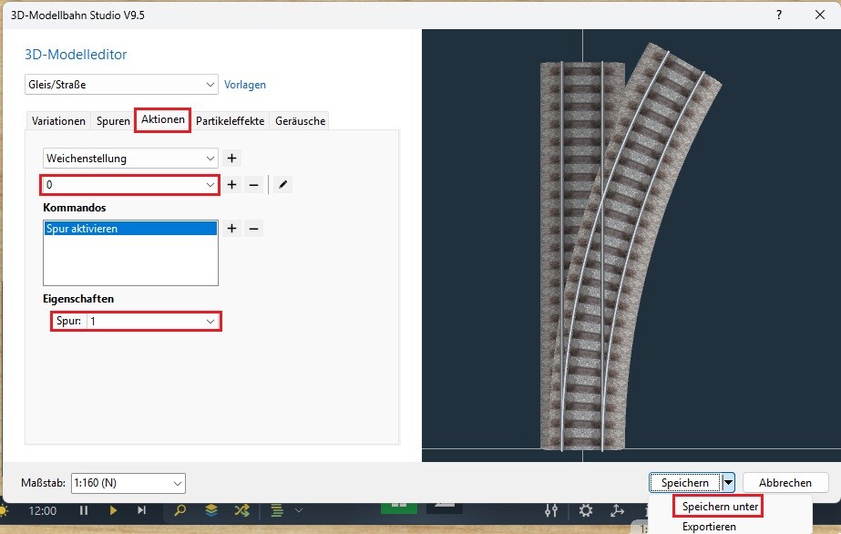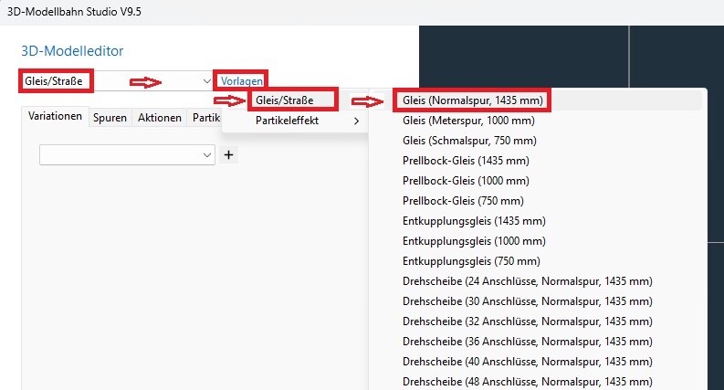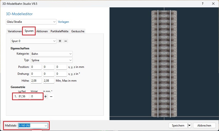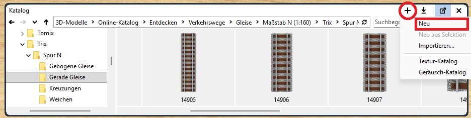 Hallo Henning, als Ergänzung zu den obigen Antworten: Unabhängig davon, dass @AndreasWB sich bereit erklärt hat, das Beton-Gleissystem von Minitrix in den Online-Katalog einzupflegen (), kannst Du im Modellbahn-Studio prinzipiell Dein eigenes Gleissystem erschaffen: Um für den Katalog ein neues Gleis anzulegen, klickt man in der Katalog-Vorschau zunächst auf das "+" und wählt anschließend "Neu" aus. Es öffnet sich nun der 3D-Modelleditor, in dem man ganz oben links als Modelltyp "Gleis/Straße" auswählt. Danach klickt an auf "Vorlagen" und wieder auf "Gleis/Straße", um sich die im Katalog verfügbaren Gleis-Grundmodelle anzeigen zu lassen. Im Falle des Minitrix-Betongleises ist "Gleis (Normalspur, 1435 mm)" die richtige Wahl. Es wird nun ein gerades Gleis "ohne Maßstabs-Beschränkung" angezeigt, dessen vorgegebenen Maße dem H0-Maßstab entsprechen. Um ein Gleis im Minitrix-Maßstab spezifizieren zu können, stellt man links unten den Maßstab "1:160 (N)" ein. Nun kann man in der Registerkarte "Spuren" eine Spur für ein gerades oder gebogenes Gleisstück (kann auch aus mehreren Abschnitten zusammengesetzt sein) oder mehrere Spuren für eine Weiche, Kreuzung oder Kreuzungsweiche definieren, wobei man die Maße aus dem Modellkatalog (soweit vorhanden) direkt ohne Maßstabsumrechnung übertragen kann. Für eigene Gleiskreationen können hier nahezu beliebige Gleisgeometrien hergestellt werden. Im Falle einer Weiche oder Kreuzungsweiche kann man unter der Registerkarte "Aktionen" verschiedene Weichenstellungen definieren, wobei man jeder Weichenstellung bestimmte Spuren des Gleisstücks zuordnet, die im Falle dieser Stellung aktiv sein (also befahren werden können) sollen. Die Weichenstellungen sind im Nachhinein als Schaltzustände der Weiche/Kreuzungsweiche auswählbar. Abschließend legt man das Gleisstück mittels "Speichen unter" ... ... im privaten Teil "Meine 3D-Modelle" des Katalogs (eventuell in einem selbst erstellten Unterverzeichnis) ab, wo es nun für die (eigene) Verwendung auf der Anlage zur Verfügung steht. Soll das Gleisstück schließlich auch anderen Nutzern des Modellbahn-Studios zur Verfügung stehen, muss es "im Internet veröffentlicht" werden. Hierzu muss man allerdings von @Neo als "Modellbauer" freigeschaltet sein. Viele Grüße BahnLand