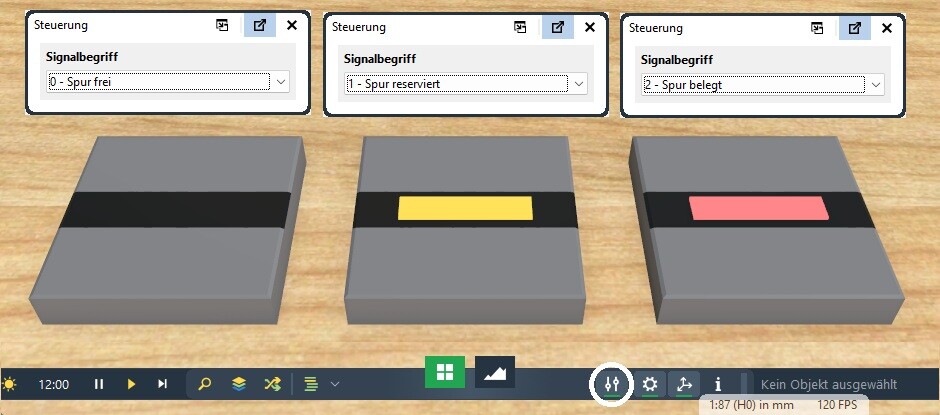 Hallo @Gernot, Die GBS-Spurbausteine sind alle wie Signale schaltbar, wobei der Signalbegriff 1 die gelbe Gleis-Reservierung und der Signalbegriff 2 die rote Gleisbelegung anzeigt. Die Umschaltung kann sowohl über das oben angezeigte Steuerungsfenster als auch automatisch mittels der Ereignissteuerung erfolgen. Bei der Ereignissteuerung braucht es ein Ereignis (z.B. "Zug betritt/verlässt Gleis/Gleiskontakt" oder "Schalter wird betätigt"), um die Belegungsanzeige des GBS-Bausteins umzuschalten. Die GBS-Bausteine können auch miteinander "verbunden" werden. Dann bewirkt die Umschaltung eines GBS-Bausteins automatisch auch die Umschaltung aller "verbundenen" GBS-Bausteine. Viele Grüße BahnLand