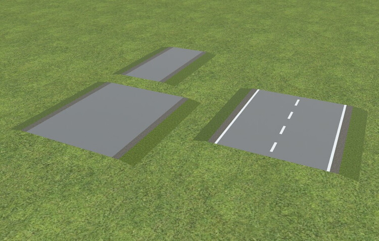 16. Halo @Glubschi, hast Du eventuell eine Kantenglättung eingesetzt, die dazu führt, dass die Vorder- und Hinterkanten optisch "abgerundet" erscheinen? Dies könnte auch eine Ursache für den von Dir beobachteten Effekt sein. Noch eine ganz andere Frage: Gibt es einen Grund, warum Du ein eigenes Straßenmodell baust? Unterscheidet sich die Querschnitt-Geometrie Deines Modells von den im Online-Katalog bereits vorhandenen Landstraßen-Modellen? Ich frage deshalb, weil es im Online-Katalog bereits Landstraßen-Modelle gibt, die Deinem Modell geometrisch zumindest sehr ähnlich sehen. Diese Straßen-Modelle unterstützen alle Tauschtexturen, wodurch es möglich ist, diese mit einer anderen Textur zu bemalen. Hierzu gibt es im Texturen-Katalog des Online-Studios eine Kategorie "Straßen", in der schon etliche fertige Tauschtexturen für die Landstraßen-Modelle enthalten sind. Diese besitzen alle dasselbe Textur-Layout, das aus jedem auf der Anlage platzierten Landstraßen-Modell als Vorlage im dds- oder png-Format heruntergeladen werden kann: Damit kann man seine eigenen Tauschtexturen für die Landstraßen erstellen und gegebenenfalls für die Allgemeinheit auch in den Texturen-Katalog hochladen. Wenn sich Dein Straßenmodell geometrisch nicht von den vorhandenen Landstraßen-Modellen unterscheidet, könntest Du Deine Straßentextur ja eventuell an das obige Textur-Layout anpassen und dann auf die Landstraßen aus dem Online-Katalog anwenden. Dann bräuchte es Dein Straßenmodell nicht. Wenn sich Dein Straßenmodell geometrisch doch von den vorhandenen Straßenmodellen unterscheidet, wäre es möglicherweise trotzdem sinnvoll, Deine Straßentextur an das obige Layout anzupassen (dann müsstest Du allerdings auch die Texturzuordnung bei Deinem Modell entsprechend anpassen). Das hätte dann den großen Vorteil, dass Deine Straßentextur auch für die vorhandenen Landstraßen-Elemente passen würden, und Du umgekehrt auch die im Texturen-Katalog vorhandenen Straßentexturen für Dein Modell verwenden könntest. Viele Grüße BahnLand
