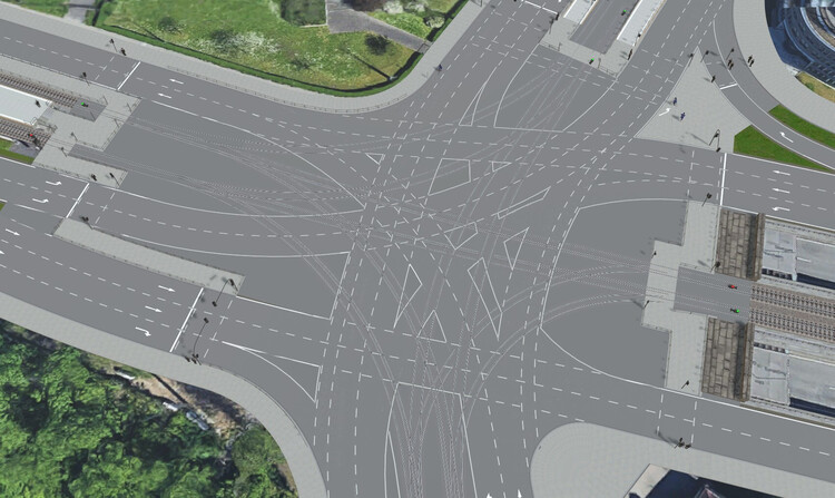 2. Hallo, notfalls kann man sich auch mit "aufgemalten" Verkehrsinseln behelfen: Das obere Bild zeigt die originale Löwentor-Kreuzung in Stuttgart in Google Maps. Das untere Bild zeigt deren Umsetzung im Modellbahn-Studio. Die "Verkehrsinseln" wurden mit dem Modell "Markierung" von Brummi (im Katalog unter "Verkehrswege\Straßen\Landstraßen" zu finden) entlang der Fahrspuren aufgelegt (mit "Pfad folgen") und anschließend passend "abgelängt". Beide Bilder können durch Anklicken vergrößert werden. Viele Grüße BahnLand