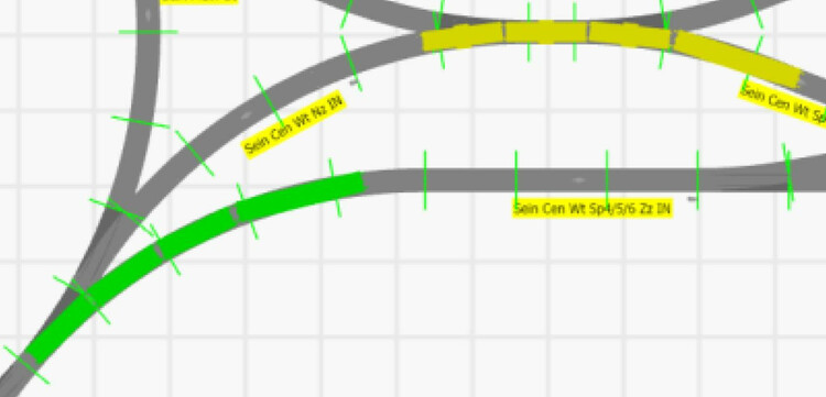 Hallo @Ciskus, leider kann ich nur das Bild von Dir interpretieren, und da sieht dies eindeutig wie die Kennzeichnung einer Fahrstraße aus. Bitte beachte, dass diese Markierung auch dann aufblinkt, wenn Du mit der Maus versehentlich über die Fahrstraße in der Liste rechts fährst, da sie auf den Mauskontakt reagiert. Auch wenn hier den zum Signal "Sein Plein 2d IN" gehörenden Gleiskontakt nicht sehe, vermute ich, dass dieses Signal der an diesem Ende die Fahrstraße begrenzende Wegpunkt ist. In meiner letzten Antwort hatte ich mich auf die grüne Markierung im obigen Bild bezogen. Diese kennzeichnet eindeutig einen Zug - genauso wie die gelbe Markierung darüber. Wie kommt man eigentlich zu solch bunten Darstellungen der Züge? Bei meinen Anlagen werden nämlich die Gleise in einem helleren Grau und die Züge ebenfalls in einem (dunkleren) Grauton dargestellt. Falls meine Interpretation nicht zur Lösung Deines Problems beitragen sollte, kannst Du die Anlage als mpg-Datei exportieren und hier als anzuhängende Datei einfügen? Denn nur mit Deinem Bild als Information komme ich nicht weiter. Viele Grüße BahnLand