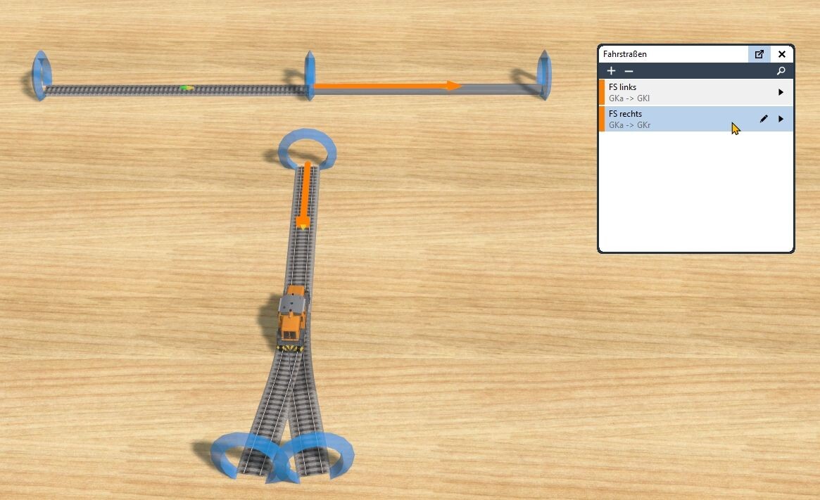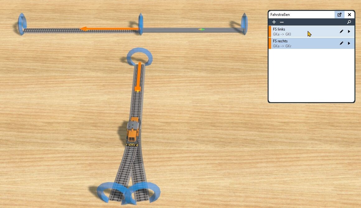 Hallo, ein kleiner Versuchsaufbau mit 2 Fahrstraßen... Ich habe es auch ausprobiert... funktioniert gar nicht. Wenn ich die Fahrstraße "FS rechts" aktiviere... biegt die Lok trotzdem nach links ab... Portal auf Gleisstoss.mbp