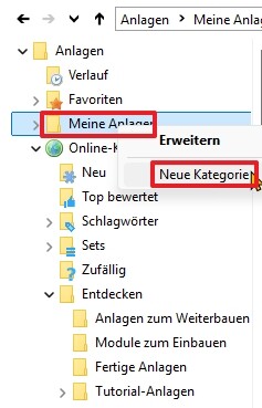 Hallo, Wenn Du im Startfenster unter "Meine Anlagen" die "Baumansicht" aktivierst.... ... dann kannst Du mit einem Rechtsklick auf "Meine Anlagen" und "Neue Kategorie" Unterordner anlegen und so Deine Anlagen z.B. thematisch ablegen... "Meine Anlagen" sind nach Namen sortiert, der "Verlauf" hingegen nach Datum des letzten Aufrufs. Daß es bei "Meine Anlagen" keine Auswahlmöglichkeit gibt nach Datum sortiert anzuzeigen hat mich auch schon genervt. Ich habe mir angewöhnt dem Anlagenamen das Datum (rückwärts) voranzustellen (z.B. 2025-12-22) so stimmt die Auflistung nach Namen immer in der Reihenfolge. Das MBS arbeitet mit einer Datenbank und legt die Projekte im lokalen Katalog vom MBS ab, weshalb Du die Projekte im Explorer nicht unter ihrem Namen finden kannst. Gruß EASY