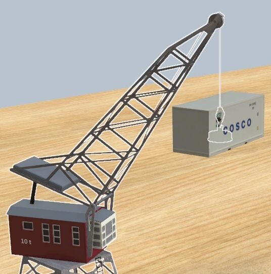 Hallo @gmd , die Ausrichtung des Kranhakens zur Rotation des aufzunehmenden Objektes erfolgt nur in der z-Ache und das nur, wenn der Kran diese Funktion hat. Als Aufnahmepunkt wird der höchste Punkt des Modells in z-Richtung über dem Mittelpunkt genommen (Markierungsrahmen als Quader), weshalb Dein "schiefer" Baumstamm in der Luft hängt. Die obere Fläche des Objekts muß also vor der Ausnahme parallel zur x-y Ebene ausgerichtet sein. Gruß EASY