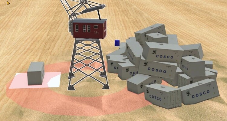 Hallo @gmd , ein interessantes Konzept ... nun kommt allerdings das "aber"... Wenn das ghost objekt aufgenommen wurde... ... und wieder auf 1 Skaliert wird, dann stimmt die Position des Kranhakens nicht mehr... ... dadurch wird des Objekt nicht richtig abgesetzt ("schwebt" in der Luft)... Für das korrekte Absetzen müßte der Kranhaken sich oben am Objekt befinden... ... dann wird "richtig" abgesetzt... ... reicht demzufolge nicht ganz aus. Hinweis: Der Kreis um den markierten Kran im Planungsmodus, zeigt seinen Wirkungsbereich... Gruß EASY