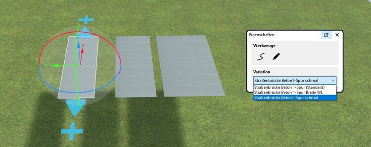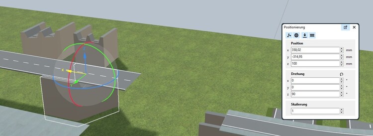 Hallo Thomas, Siehe oben Das ist vielleicht etwas gewöhnungsbedürftig, aber alle Widerlager und der Pfeiler haben einen CP-Spline! Der rastet aber nur in einer Spur einer Straße ein und und nicht in der als 3D-Spline definierten Brücke. zur Erläuterung meine Vorgehensweise: 1. Straße in die gewünschten Höhe legen. (Über einer Straßen in z =75 mm H0 und über ein Gleis mit Oberleitung z = 100mm. 2. Spline- Brücke mit "Pfad folgen" an die Straße anfügen. 3. Widerlager/ Pfeiler in die Straßenspur einrasten. Das ergibt automatisch die richtige Höhe zur Brücke. Als Tipp für das Anfügen der Widerlager/ Pfeiler. Erst die Höhe der Straße einstellen, hier z = 100mm. Dann nur mit den Pfeilen "rot" oder "grün" zur Straße verschieben. Dann rastet das Widerlager ein. VG, Hawkeye