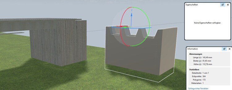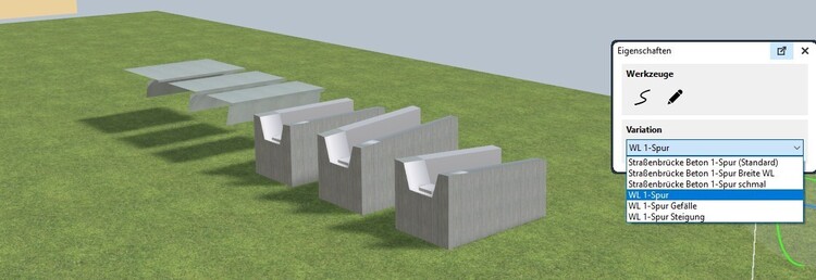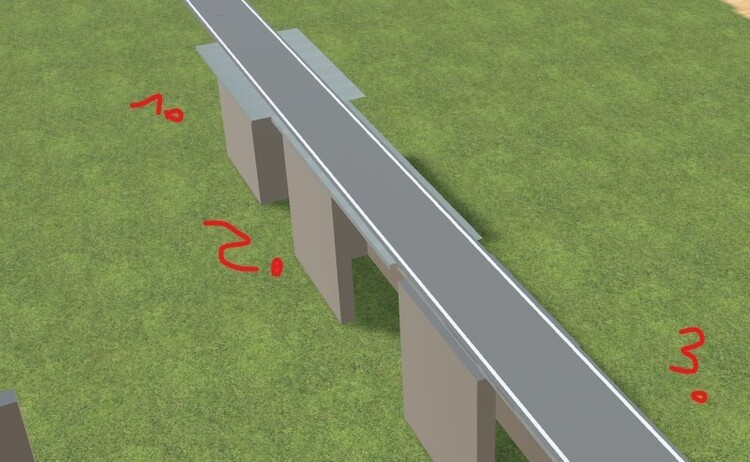 Hallo, irgendwie komme ich zu diesem Thema immer wieder auf neu wilde Ideen. Warum nicht auch das Widerlager mal als 3D-Spline definieren und eine Variante für Gefälle und Steigung ausprobieren. Hochgeladen mit der Entwurfs-ID: 40CFF668-1633-45CE-B211-1D52045255EF Damit lassen sich z.B. folgende Situationen darstellen. Widerlager in Kurven: Widerlager in Steigungen: Hier lassen sich durch Verlängern/ Verkürzen des Spline sogar unterschiedliche Steigungen in einem gewissen Rahmen realisieren. Die Steigung bzw. das Gefälle sind im Grundmodell auf 4° definiert. Entspricht in etwa 7% (+/-) je nach Länge des Spline. Widerlager in Kurven und Steigungen: Ich warne aber schon mal vor! Das so hinzukriegen ist eine wahnsinnige Fummelei. Viel Spaß beim Ausprobieren. Und vielen Dank nochmal an @Roter Brummer für die Textur. Dadurch muss ich mich ja doch mal langsam mit Texturen beschäftigen. Ist aber noch ein langer Weg, bis ich da die optimalen Lösungen für verstehe. Ich hoffe aber, für den Anfang und diesen einfachen Anwendungsfall recht es erstmal. VG, Hawkeye