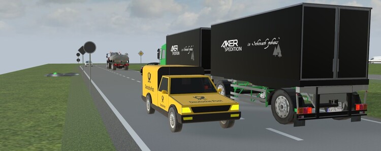 Dann musst du dir die ideale Kombination von Annäherungsgeschwindigkeit und Verzögerung selbst ermitteln. Hierzu eine Teststrecke. Teststrecke Verzögerung.mbp Die Geschwindigkeit wird per Zufall in der EV eingestellt. Die Verzögerung kannst du mit den blauen Schaltern (-)/ (+) um jeweils 0,1 m/s² verändern. Viel Spaß beim Ermitteln deiner optimalen Einstellungen. VG, Hawkeye