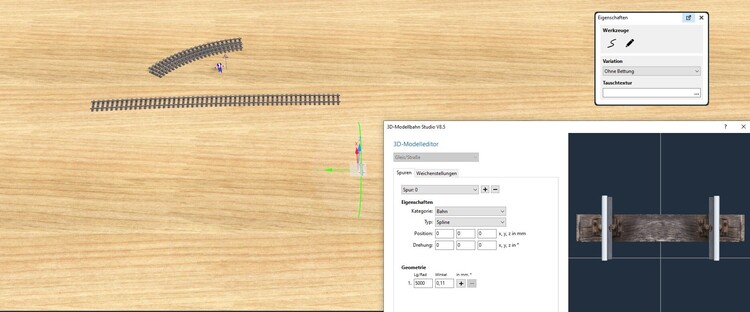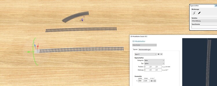 Hallo @Neo, für diese beiden Punkte aber nur mit Einschränkungen. Senkrecht angestellte Gleisen/Spuren lassen sich in x-,y- Richtung besser modifizieren, aber nicht in z-Richtung. Vermeidung von Sprüngen beim Bearbeiten von Gleisen mit großen Radien funktioniert beim Ziehen an der Y-Achse nur, solange der Winkel > 5° ist. Unter 5° springt ein Gleis immer noch zurück. VG, Hawkeye