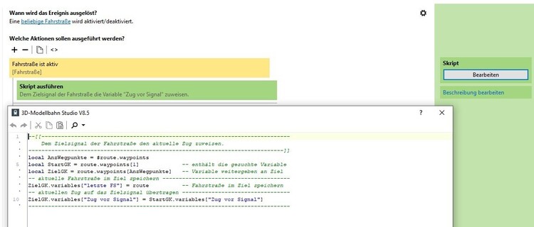 Dann ist es ja noch einfacher mit einem Schlagwort, wenn du den GK des Signals betritts. Die im GK vergebene Variable gilt dann auch für das Signal. Zug startet mit 5s Verzögerung.mbp VG, Hawkeye