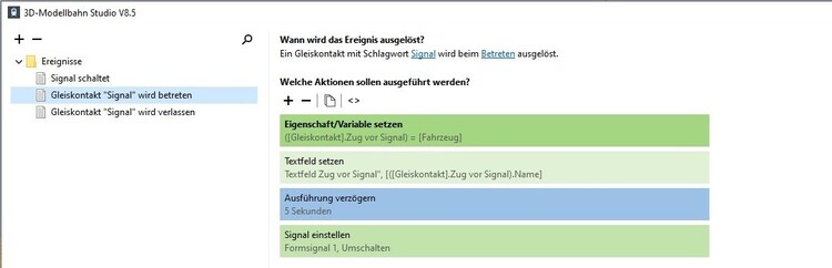 - Auslöser bei „Signalstellung hat sich geändert“: Gleiskontakt und Fahrzeug wären auch schön zu haben