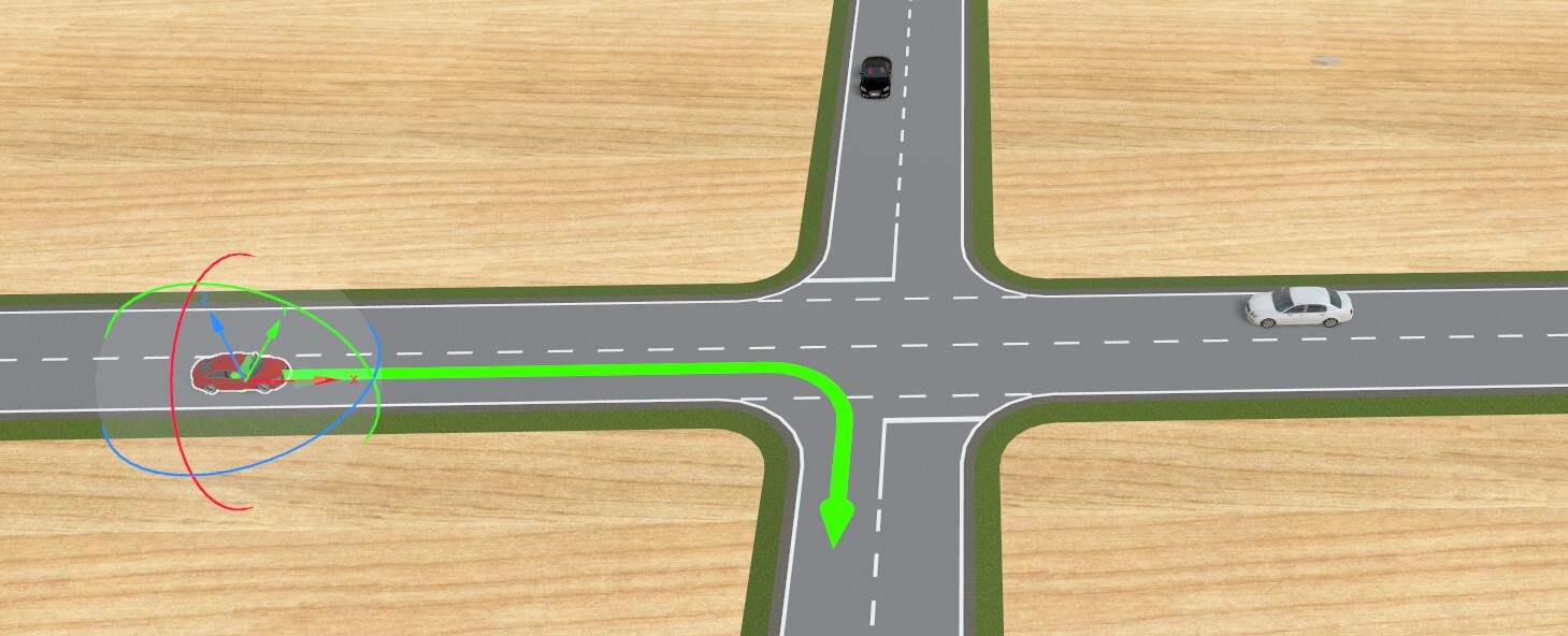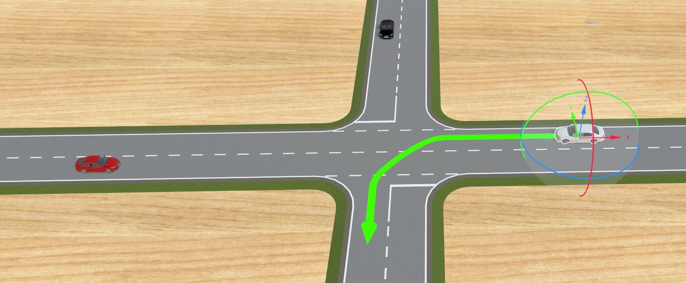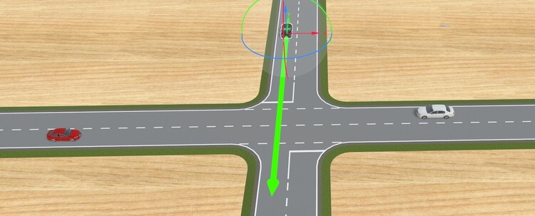 Hallo @Neo , mal vorsichtig gefragt, wann gibst du den Zugriff auf die Strecke bei dieser Funktion frei? Ich probiere jetzt schon eine ganze Weile an dem Thema "Schnittstelle von Fahrspuren". Die erforderlichen Längen (Vorderkante/Hinterkanten der Fahrzeuge) ermittle ich bisher nur linear, was gerade bei den unterschiedlichen Kurvenradien an Kreuzungen zu verfälschten Ergebnissen führen kann. Auf der Testanlage macht das noch keinen Unterschied, da hier beide Spuren den gleichen Fehlbetrag erzeugen. Hierzu auch mal eine erste Anlage dazu: Test Schittstelle Spuren.mbp Ziel ist es, wenn Fahrzeuge auf Kollisionskurs sind, ein Fahrzeuge rechtzeitig vor der Schnittstelle (rot) so abzubremsen, das die Kollision vermieden, aber trotzdem der Verkehrsfluss kaum beeinträchtigt wird. Ein Fahrzeug zu beschleunigen wäre auch eine Alternative (z.B. bei einer Autobahnauffahrt). Das ist aber erst einer der nächsten Schritte und jetzt noch nicht Thema. Bisher verfolge ich den Ansatz über die Zeiten t der Fahrzeuge bis zum Ziel. Das wird aber bei sehr niedrigen Geschwindigkeiten problematisch, da bei V -> 0 t unendlich wird. Alternativ wäre der Ansatz über die Reststrecke. Der Ansatz berücksichtigt dann aber nicht, ob ein Fahrzeug weiter entfernt ist und das Ziel aufgrund seiner höheren Geschwindigkeit doch früher erreichen würde. An einem Kompromiss arbeite ich noch. (z.B. Wenn für ein Fahrzeug gilt V = 0 , dann ermittle t über die Zeit für die Beschleunigung von 0 auf 50kmh) Wer Ideen oder Anregungen dazu hat, immer raus damit. VG, Hawkeye