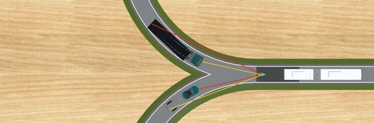 Genau, es geht um die Fahrstrecke von Fahrzeugspitze bis zum Kontakt. Die grünen Stecken in den folgenden Bildern werden von vehicle:isheadingTowards(contact) bei Aufruf der Funktion intern ermittelt, stehen uns aber noch nicht zur Verfügung. Bisher ermittle ich die Distanz (rot) nur annähernd genau linear mit Lua. (bzw. Vorderkante/ Hinterkante der Fahrzeuge -> siehe nächstes Bild) Für die gestellte Aufgabe benötige ich einigermaßen genau die Strecken rot und gelb der Fahrzeuge , die auf denselben Kontakt zufahren und das zum gleichen Zeitpunkt. Über die aktuellen Geschwindigkeiten lässt sich dann ermitteln, welches Fahrzeug den Kontakt zuerst erreicht und welches ggf. abgebremst werden muss, um eine Kollision zu vermeiden. VG, Hawkeye