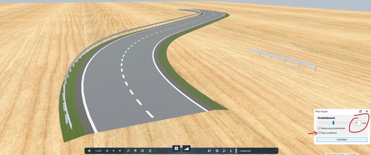 Hallo @Anlagendesigner, Findest du den Abstand der Leitplanke zur Straße so in Ordnung? 🤔 Normalerweise steht sie in einem gewissen Abstand neben der Straße. Einfach mal Googlen VG, Hawkeye
