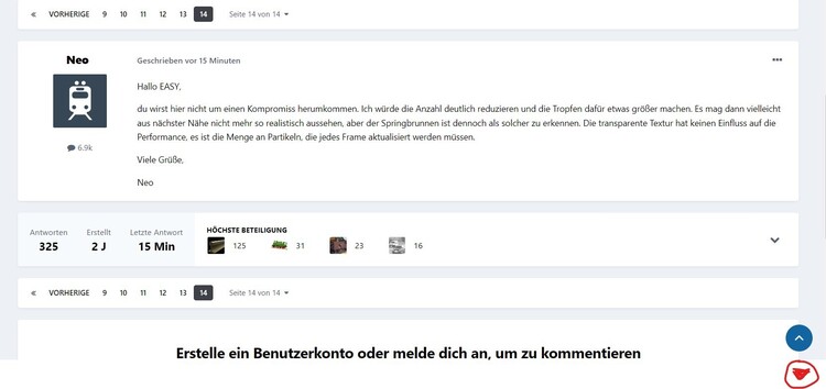 Hallo @Neo, ist es möglich dem Forum einen zusätzlichen Button für "abwärts -scrollen" zu spendieren. Es ist irgendwie lästig, wenn man bei einem Seitenwechsel den vorangegangen Beitrag auf der Seite davor nochmal lesen möchte, immer in dem obersten Beitrag der vorherigen Seite landet. Oder alternativ wäre es auch möglich, dass beim "Zurückblättern" gleich der letzte Eintrag der vorherigen Seite angezeigt wird, denn der Button um nach "oben zu scollen" existiert ja. . (Ist das besser oder einfacher ?) VG, Hawkeye PS: Die Einstellung "Beim Anzeigen von Inhalten" ist : Zum letzten Eintrag gehen.