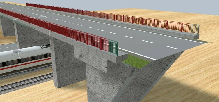 Dazu baust du noch ein kurzes Brückenstück in der Länge des Widerlagers an. Mit „Duplizieren“ und Auswahl „Geländer“ sieht das dann so aus wie in meinem Bild oben. VG, Hawkeye