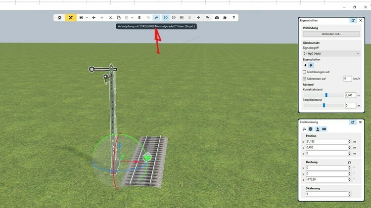 Hallo @Cappy, das können die Gleiskontakte eigentlich nicht, wenn sie mit dem Gleis verbunden sind. Verschiebt man das Gleis (auch unabsichtlich), werden verknüpfte Objekte (z.B. die Signale) mit verschoben. Sind die Objekte nicht mehr richtig verknüpft, dann ist der Gleiskontakt auch nicht mehr "grün". Bei dir ist der Gleiskontakt (in deinem Bild oben) verschoben und "grün". Das kann ich nur nachstellen, wenn ich nach dem Verknüpfen des Signals mit dem Gleis die Skalierung des Gleises verändere. Das ist aber auch nur geraten. Also, wie @Goetz schon gesagt hat: Ohne mehr Informationen von dir, wird auch niemand eine Lösung finden. VG, Hawkeye