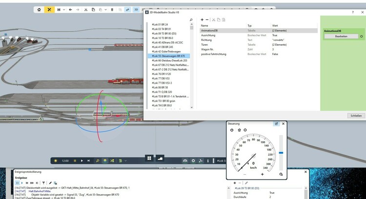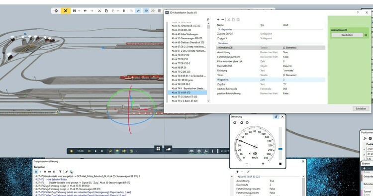 Hallo @jloos, ich bekomme die gleiche Fehlermeldung wie @Goetz, auch mit dem selben Fahrzeug an der gleichen Stelle. Bei diesem Zug sind beide Fahrzeuge aktiv und haben Geschwindigkeiten zugewiesen. d.h. Wenn der Zug ein Signal erreicht, wird nur bei einem Fahrzeug die Geschwindigkeit auf "0" gesetzt und er fährt trotzdem weiter. Auch sind in beiden Fahrzeugen des Zuges unterschiedliche Variablen definiert, was wohl zu den Fehlermeldungen um Ereignisprotokoll führt. Der Antrieb eines der beiden Fahrzeuge in dem Zug sollte deaktiviert werden. Lauft die Anlage weiter überfährt der Zug das Signal und es erscheint diese Meldung für den gleiche Zug. VG, Hawkeye