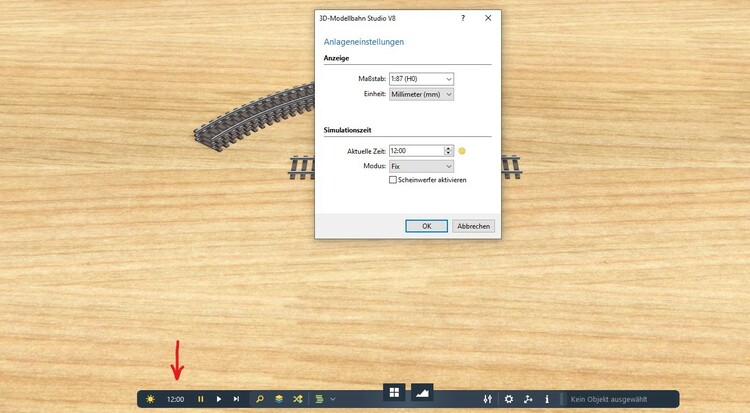 Hallo @Neo, ich habe eine ganze Weile das Fenster "Anlageneinstellungen" gesucht, in dem der Maßstab einer Anlage verändert werden kann. (Bild von V7) Nach langem Suchen habe ich es gefunden. Hier finde ich den Text "Simulationszeit einstellen" etwas verwirrend, der eingeblendet wird, wenn man mit der Maus auf die Uhrzeit fährt. Hier wäre den Oberbegriff "Anlageneinstellungen", so wie wir ihn aus V7 kennen, sinnvoller, da ja nicht nur die Simulationszeit, sondern auch der Maßstab eingestellt werden kann. Ist der Beta-Test eigentlich schon beendet? Viele Grüße, Hawkeye