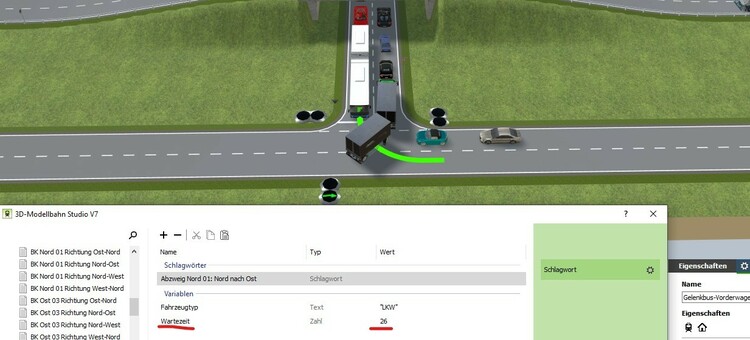 Hallo Neo, ich habe jetzt ein paar Tage damit verbracht, eine sinnvolle Steuerung für einen Abzweig zu erstellen. Letztlich bin ich zu dem Ergebnis gekommen, das ein wesentlicher Faktor für die vielen Fehlversuche hierzu, die von dir beschriebene Logik aus dem Zugbereich die Ursache ist. Straßenverkehr ist nicht Zugbereich. Fahrzeuge im Straßenverkehr dürfen vom Programm nicht als Gruppe interpretiert werden, wenn sie sehr dicht hintereinander fahren, aber über die Kupplungen nicht zusammenhängen. Den dadurch reagieren nicht alle (einzelnen) Fahrzeuge der Gruppe auf vorhandene Gleiskontakte, sondern nur das von dir beschriebene "Referenzfahrzeug". Das bring jegliche Steuerung für den Straßenverkehr über die EV durcheinander. Dabei gibt es doch vorhandene Unterscheidungsmerkmale, die verwendet werden könnten. Ein Gleis für den Zugverkehr ist vom Typ "Spline". Ein Fahrspur für den Straßenverkehr ist vom Typ "Virtuell". Diese Unterscheidung müsste in den internen Ablauf im Programm implementiert werden, damit Fahrzeuge auf einer Straße sich auch anders verhalten können. Viele Grüße, Hawkeye