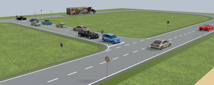 Mit solchen Werten kannst du eine Kreuzung vergessen. Dann kommt der LKW nicht um die Kurve bevor das geradeaus fahrende Fahrzeug da ist.