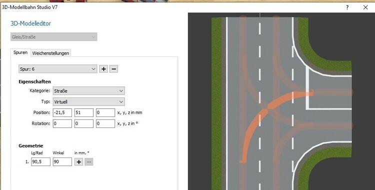 Hallo, den Grund hierfür habe ich gefunden. Es liegt an der Reihenfolge, wie die Spuren in einer Kreuzung definiert sind. Die Abbiegespur ist an Stelle 6 Die Geradeausspur ist an Stelle 10. Erreicht ein Fahrzeug den Schnittpunkt, richtet sich das Fahrzeug (oder eine Fahrzeuggruppe, ob gekoppelt oder nicht) an der niedriger definierten Spur aus. In diesem Fall der Spur 6. Das kann durch Vertauschen der Spuren verifiziert werden. Allerdings lässt sich keine optimale Reihenfolge der Spuren finden. Der Effekt wirkt dann nur auf eine andere Variante verlagert. Die Spurnummer des geraden Stücks, das auf den Schnittpunkt folgt, hat keinen Einfluss auf die Ausrichtung. VG, Hawkeye