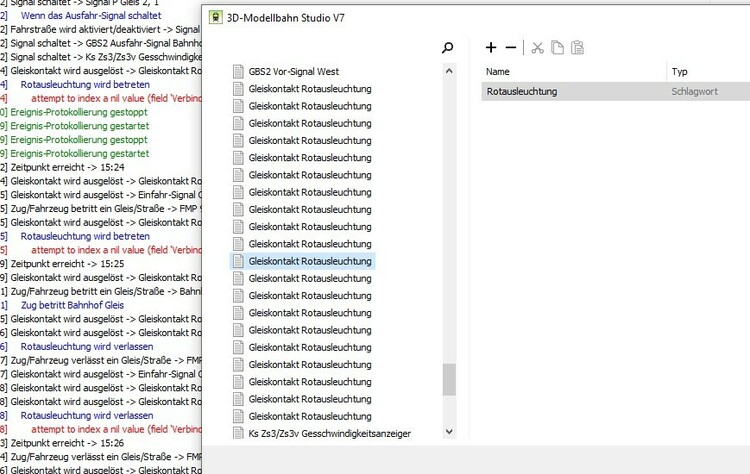 Hallo Markus, ein grundsätzlicher Fehler ist, zu viele Objekte mit dem gleichen Namen zu verwenden, denn auch wenn der Name gleich ist, sind es immer noch verschiedene Objekte, das erkennt das MBS. Alle Gleiskotakte haben das gleiche Schlagwort, deshalb möchte das Programm auch für jeden "Gleiskontakt Rotausleuchtung" diese Verbindung prüfen. Welcher dieser vielen gleichnamigen Gleiskontakten jetzt eine solche Verbindung und mit welchem Objekt hat, kannst nur du beantworten. Die roten Fehlermeldungen weisen darauf hin, das eben nicht alle Gleiskontakte "Rotausleuchtung" eine Verbindung haben. Entweder du stellt diese Verbindungen her oder du entfernst die GK, die keine haben, solange, bis die Fehlermeldungen verschwunden sind. VG, Hawkeye