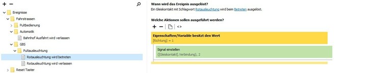 Hallo Andreas, habe deine Betrag gefunden, worum es dir geht. Mit der Gleislösung ist 1. überflüssig (Wenn die Information nicht anderweitig verwendet werden soll.) 2. Gleis "reserviert" wird bei Aktivierung einer Fahrstraße sofort angezeigt. 3./4. "Belegt" wird bei Betreten des 1. Gleises der Fahrstraße ausgelöst. 5. Was ist Zufahrt, was ist Zielgleis? 6. Da ist noch Handlungsbedarf, da die "belegte" Fahrstraße mit Betreten des Signal-GK deaktiviert wird, das ist mir auch noch zu früh. Das sollte erst ausgeführt werden, wenn der Zug den vorherigen Gleisabschnitt vollständig verlassen hat. Mal sehen ob das mit meiner Lösung realisiert werden kann. Ich denke das ist machbar, das zumindest die "belegt"-Anzeige im GBS solange an bleibt, bis der Zug das letzte Gleis der Fahrstraße verlassen hat. Eine temporäre Variable im Zug mit dem letzten Gleis der Fahrstraße (beim Betreten einlesen und beim Verlassen löschen) dürfte die GBS Anzeige "belegt" für die restlichen Meter bis zum vollständigen Verlassen der Fahrstraße leuchten lassen, auch wenn die Fahrstraße sich schon deaktiviert hat. Viele Grüße, Hawkeye