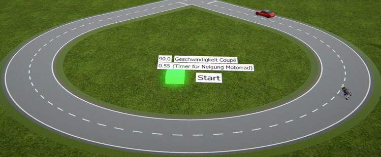 Hallo, und es funktioniert, hier ein paar Bilder der Vespa in Kurve. Die Veränderung der Neigung ist bei Ein- und Ausfahrt in /aus der Kurve animiert. VG Hawkeye