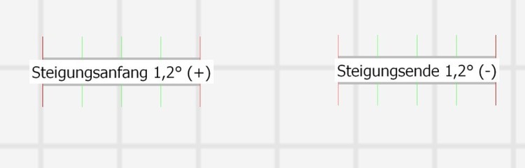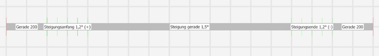 Hallo Schwartautom, der Ansatz ist doch genau richtig. Du brauchst dir doch nur zwei Gleise, eins für den Steigungsanfang und eins für das Steigungsende selbst erstellen. Diese können dann immer in neue Anlagen kopiert werden. Hier mal ein paar Beispielbilder. Die Zahnradtextur dient nur zur Veranschaulichung. Jedes Gleis besteht für die "runde" Steigung hier im Beispiel aus 4 Spuren a 50mm Stücken jeweils um 0,3° angehoben bzw. am Steigungsende entsprechend wieder abgesenkt. Ergibt doch eine schöne Rundung. VG Hawkeye