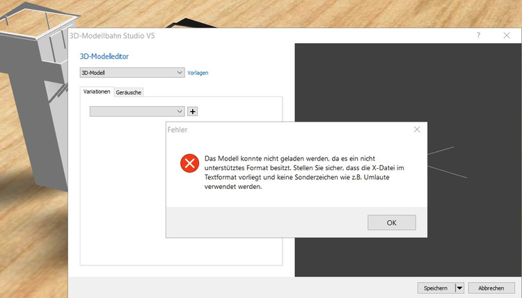 Hallo Hubert, zu meiner Verwunderung stelle ich fest, dass meine unmittelbare Antwort an Dich bei Dir nicht angekommen ist bzw. nicht im System hinterlegt ist. Mit dem Fehlercode 2S119/1 ist ein bereits beim Versenden einer Anwort an BahnLand abgebrochen worden. Diese Meldung war bei meiner unmittelbaren Antwort an Dich nicht aufgetaucht. Ich schrieb unmittelbar an Dich: Hallo Hubert, Respekt für Deine Aktivität zur morgendlicher Stunde. Wie aus Bild1 zu sehen ist, ist der Job von BahnLand DirectX mit OK testiert worden, war aber ins MBS-V6 nicht einzupflegen. Der Export über Khronos war dieser in MBS-V6 einzupflegen. Bin gespannt, wie BahnLand den Test bewertet. Ich werde jetzt einen Kaffee trinken und dann von MBS-V6 träumen. Ich wünsche Dir eine gute "Nacht". So, jetzt bin ich beim HEUTE, 21.10.2020, 9:10 Uhr. Wie Dein Hinweis auf "Komponenten im Modell" zu verstehen ist, bzw zu welchen Fehlermeldungen diese bei der Einpflege in MBS-V6 führen, wenn Du dazu ein paar Takte schreiben könntest, wäre ich Dir dankbar. Dir einen schönen Tag, Schwellensprung