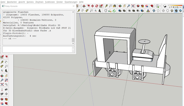 Hallo Hubert, durch die Tests mit LandBahn DirectX kann ich Dir mitteilen, dass sowohl Gruppen wie auch Komponenten akzeptiert werden. Auf keinen Fall werden Namen akzeptier, die in Sketchup GLIEDERUNG mit Leerstellen, Umlaute Ä, ä, Ö, ö, Ü und Sonderzeichen z.B. & aufweisen, wie BahnLand in seiner der Beschreibung berichtet. Wie es so eben ist und ich nehme mich nicht aus. "probieren geht über studieren," denn welcher Mann ließt die Anleitung des neuen Kühlschranks vor der Inbetriebnahme. Mit Sketchup V2020 ausgeführte Modelle können nicht nachträglich z.B. in V2015 portiert werden. Einmal das alten Modell in einer höheren Version abgespeichert, wird es für alte Sketchup-Programme unerreichbar. Sketchup weis einen bei der Übernahme des Modells in eine Höhere Version ausdrücklich darauf hin. Herzliche Grüße, Schwellensprung / 5 Stunden früher :-) Herzlichen Dank für Deine Hinweise. Hello Hubert, by testing with LandBahn DirectX I can tell you that both groups and components are accepted. In no case names will be accepted, which have in Sketchup GLIEDERUNG with spaces, umlauts Ä, ä, Ö, ö, Ü and special characters e.g. &, as BahnLand reports in its description. As it is so evenly and I do not exclude myself. "trying is better than studying", because which man reads the manual of the new refrigerator before putting it into operation. Models made with Sketchup V2020 cannot be ported later e.g. to V2015. Once the old model is saved in a higher version, it becomes unreachable for old Sketchup programs. Sketchup explicitly points this out when transferring the model to a higher version. Best regards, threshold jump / 5 hours earlier :-) Thanks for your hints.
