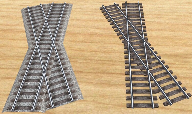 Hallo @Leslie , solche Kreuzungen existieren bereits ... ... Über "Ersetzen" durch vorbild-orientierte Gleise aus dem Katalog. Dann nur aus dem Zubehör die richtigen Zusätze mit einbauen. Bei der Kreuzung hast Du jedoch zum sicheren Befahren die Leitschienen vergessen. Gruß Andreas