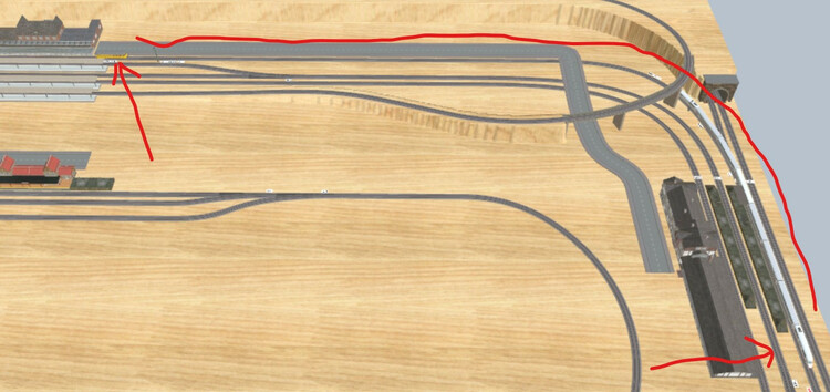 Moin, moin Seit ein paar Wochen bin ich auch dem sehr zeitraubenden "3D-Modellbahn Studio V6" verfallen. Ich komme ursprünglich von EEP das ich aber aus vielerlei Gründen abgehakt habe. Ich beschäftige mich zur Zeit mit meiner Testanlage "Darmstadt EV1.1". Die Anlage hat mit der realen Bahn nichts zu tun und ist einfach mal so aufgebaut worden. Das ich mir dadurch etliche Schwierigkeiten und Fallstricke eingehandelt habe ist mir völlig klar aber es wird auch interessanter sie zu beseitigen und die Möglichkeiten vom MBS auszutesten. 😉 Ich hab jetzt schon einiges ausprobiert sei es bei der Gleis oder Straßenverlegung, Gelände, Tunnel, Signale usw.. Im Moment bastel ich an der Steuerung mit der EV was sich teilweise gar nicht so einfach gestaltet. Die Züge im Schattenbahnhof lassen sich über die Taster an den Schaltpulten starten, da werden einfach nur die Signale auf "Fahrt" gestellt. Bei den ersten 3 Gleisen hab ich auch die Weichen schon mit eingebunden (SbSig1-3). Natürlich muß ich mir noch überlegen wohin die einzelnen Züge fahren sollen, wie lange sie dort halten usw.. Als nächstes will ich mir erst mal eine Blocksteuerung ausdenken und wie ich die realisieren kann was mich sicherlich einige Wochen kosten wird.😁 Das Schwierigste kommt dann zum Schluss, die Ausgestaltung der Anlage. Damit stehe ich noch auf Kriegsfuss da bei mir eigentlich alles geometrisch korrekt und rechtwinklich sein sollte. Ich hab die Anlage mal als Entwurf eingestellt falls jemand Interesse hat sie sich mal anzusehen. Leider mußte ich die Beschriftungen der Bahnhöfe (Da Hauptbahnhof,Süd,Ost,Nord) wieder entfernen da beim Hochladen immer ein Fehler enstand das ich die Jpg Dateien mit den Schildern zuerst hochladen sollte. Hab aber keine Möglichkeit hierfür gefunden wo das geht? Hier die Content ID: 2DBF4A68-2169-451D-95F0-92CC5D565E90 oder hier Variablen : wartender Zug vor SbAussfSig1 = steht bei jedem Ausfahrtsignal aus dem Schattenbahnhof Wunschgeschwindigkeit = jeder Zug bekommt diese Variable