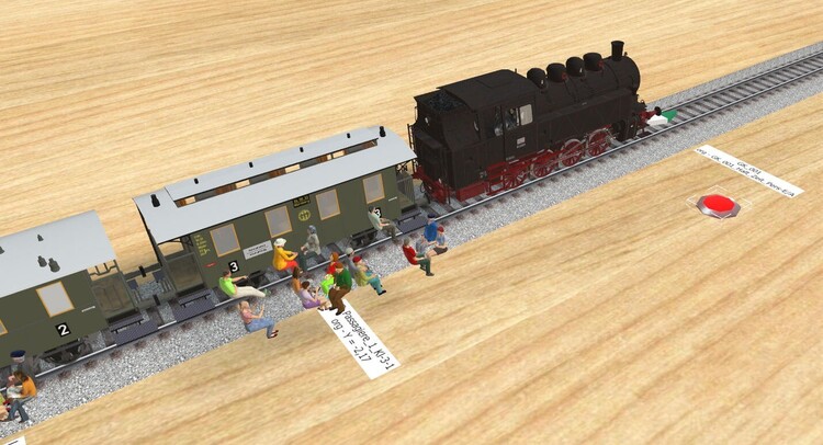 Hallöchen Jung's Hier mal meine Ergebnisse Mit Goetz sein Vorschlag "ok" - habe auf 0 od.1 gesetzt und die maximale Menge 4 - 30 ( Pro Wagon = 24 Pers. / Gepäck = 13 Stk ) Zwischen den einzelnen Stücken ( Pers./Gepäck ) 0,2 sek. Phrontistes deine Variante ist auch ok (und archiviert) Durch " Zwischen den einzelnen Stücken ( Pers./Gepäck ) 0,2 sek." munitioniert sich auch Ansehnlichst der Mengentausch. Besten Dank nochmal.
