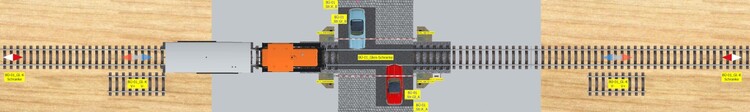Hallo Ihr Guten da draußen --->>> Alles Beste noch im Vorraus für 2024 <<<--- !!! WER KANN HELFEN !!! Ich habe ein BÜ der Gut Funktioniert mir geht es um die Zugsteuerung Mit "BÜ-01_Gl.K_Schranke"(rechts und links)schließt die Schranke u.u.u. Mit V+/ V- (( falsch rum beschriftet ) sorry ) bremse ich die Überfahrt des Zug's über BÜ und beschleunige wieder. Mein Anliegen wäre wie die EV aussehen muß um beim Befahren "BÜ-01_Gl.K_Schranke" noch die Geschwindigkeit als Variable abgenommen wird und nach verlassen des BÜ wieder auf die Lok übertragen wird Kontakte V+/V- wollte ich damit einsparen. Also egal mit welcher Geschwindigkeit und aus welcher Richtung und mit welcher Richtung kommend (Hatte die Demo1,2,3-Anlage mit Beschriftungsfeld als Ausgang genommen) Habe schon Stundenlang die Nacht Test's gemacht Vergeblich