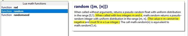 kann man: Es dürfen nur ganze positive Zahlen eingegeben werden. Allerdings fängt @Neo auch gleich dreifach verkehrten groben Unfug wie den hier: also $("Events").variables["Test"] = math.random(0.1, -0.1) ohne Fehleranzeige im event trace nicht ab, obwohl Lua selbst meldet: "bad argument #1 to 'random' (number has no integer representation)"