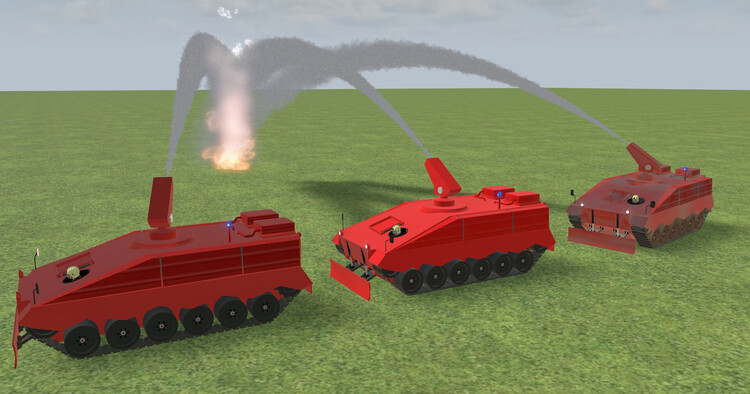 Hallo Zusammen, wie schon an anderer Stelle beschrieben, habe ich ein ketten-getriebenes Löschfahrzeug gebaut. Na gut. es sind deren drei geworden: Fahrzeug 1 ist das ursprüngliche Modell, gebaut nach Bildern aus dem Web, in der Farbe, wie es sich mir dort anbot Fahrzeug 2 ist (annähernd) in Feuerwehr-Farben gehalten Fahrzeug 2 ist schon etwas abgenutzt, vor allem bzgl. des Farbkleides Das Modell ist mit den übliche Animationen versehen: • Licht, Blinker, Warnblinker, Bremslicht, • das Schild kann bewegt werden, • die Klappe der "Mannluke" lässt sich öffnen, • in die Mannluke passt z.B. der Fahrer (rastet ein) aus der Besatzung Fahrzeugkran, • die Spritze lässt sich um 360 Grad drehen und anheben • das Löschwasser aus der Spritze kann ein/ausgeschaltet werden. Das Modell steht dann nach der Freigabe durch @Neo im Katalog zur Verfügung. Schöne Grüße SualokinK