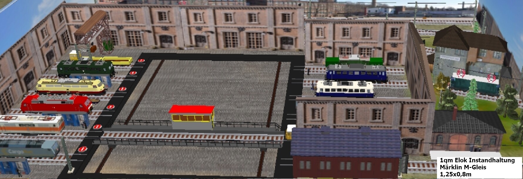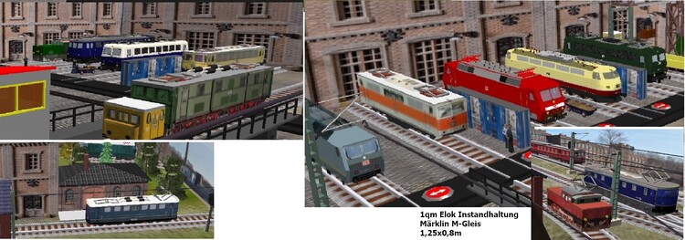 4. Hallo Modellbahnfreunde Diesmal habe ich auf einem qm "nur" ein Lebendiges Diorama aufgebaut. Das Thema ist ein Bahnbetriebs- oder Ausbesserungswerk. Der Spielbetrieb beschränkt sich auf Rangierarbeiten. Im konkreten Fall gibt es aber noch einen zusätzlichen Vorteil: Außer dem Rangier-Traktor oder Kleinlokomotive müssen die restlichen Loks gar nicht funktionieren! Diese Exponate können kaputte Modelle ohne Antrieb vom Flohmarkt sein, da sie ja durch die Rangiereinheit bewegt werden. Folglich ein Kostengünstiges Projekt auf kleiner Fläche mit entsprechender Abwechselung.