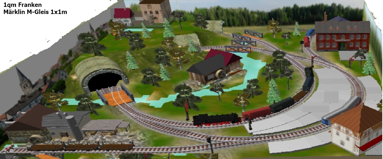 25. Hallo Modellbahnfreunde In dieser Jahreszeit werden die meisten Starterpackungen von den Modellbahnhersteller verkauft. Zu Weihnachten werden diese auf dem Tisch oder dem Fußboden aufgebaut und nach ein paar Wochen für immer und ewig verpackt auf den Dachboden verstaut, weil der Reiz verflogen ist. Aus diesem Grund zeige ich hier gerne einige Modellbahnpläne der einfachen Art, welche auf diesen Starterpackungen aufbauen. Die Gestaltung soll zeigen, welche Möglichkeiten bestehen, aus wenig mehr zu machen. Der Fantasie sind keine Grenzen gesetzt. Diesmal halt "Franken in der Epoche 3." Fast nichts ist unmöglich. Gruß Modellbahnspass