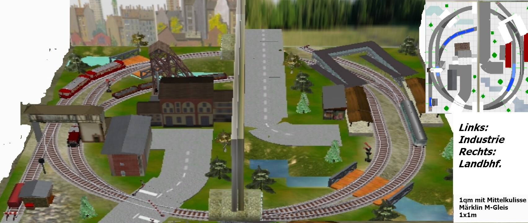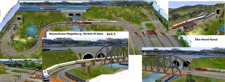 3. Hallo Leute Aus einer kleinen Modellbahn kann leicht eine große Modellbahn werden, wenn sich die Platzverhältnisse ändern. Die Kinder sind aus dem Haus und das Kinderzimmer harrt der weiteren Verwendung In so einem Fall weis manch einer kurzfristig nicht, wie dieser "viele Platz" genutzt werden kann. Ich habe nochmals ein Beispiel aus den neuen Bundesländern umgesetzt, weil solche interessanten Szenen es wert sind, umgesetzt zu werden und mit wenig Gestaltungsmittel der Platz genutzt wird. Es handelt sich um das Wasserkreuz Magdeburg. In Verbindung mit der Bahn in jeder Epoche nutzbar. Ich kann auch größere Pläne, aber das schwierige ist m. E. die Beschränkung Gruß Modellbahnspass