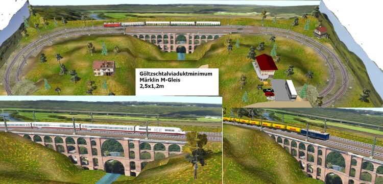 20. Hallo Modellbahnfreunde Nicht jeder Modellbahner braucht einen Bahnhof auf seiner Anlage. Manche erfreuen sich gerne daran, wenn ein Zug nur über die "freie Strecke" seine Kreise zieht. Solch eine Paradestrecke bekommt seinen eigenen Reiz, wenn man auf der Anlage einen Eyecatcher verbaut. Als Beispiel zeige ich mal das Goltzschtalviadukt, welches stellvertretend für beliebig viele Möglichkeiten herhalten soll. Auch hier sind der Fantasie keine Grenzen gesetzt. Im Unter- bzw. Hintergrund lässt sich ein Schattenbahnhof installieren, der für genügend Abwechselung sorgt. Modellbahnspass