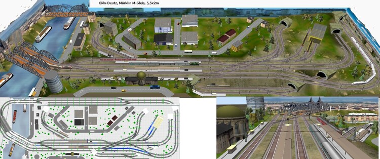 10. Hallo Modellbahnfreunde Den Bereich "Köln" habe ich bereits in mehreren Beiträgen auf den unterschiedlichsten Anlagengrößen behandelt. Als Variation dazu möchte ich heute eine größere Modellbahnplanung vorstellen - sozusagen für die "Fortgeschrittenen" unter euch - welche mit dieser Region etwas anfangen können und wollen. Konkret sind wir diesmal auf der anderen Rheinseite in Deutz. Ein interessanter Bahnhof, der dem Hauptbahnhof in nichts nachsteht. Gruß Modellbahnspass