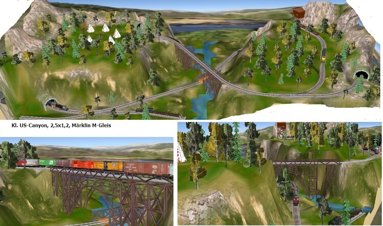 Hallo zusammen Auch ohne konkretem Vorbild kann man eine US-Modellbahn planen, wenn man gewisse Vorstellungen hat. Die Größe der Modellbahn ist im Realbau dabei der Rahmen, an dem man sich orientiert. Wichtig ist (je kleiner der Platz ist), sich auf ein Thema zu konzentrieren und sich nicht zu verzetteln. Im vorliegenden Fall habe ich eine US-Treslebridge in der Natur der Rocky-Ausläufer als zentrales Thema ausgewählt. Im Grund lässt sich die Anlage über 150 Jahre betreiben durch den Austausch des rollenden Materiales. Der Betrieb kann durch ein Sägewerk, Minenanschluss etc. etwas aufgepeppt werden Gruß Modellbahnspass
