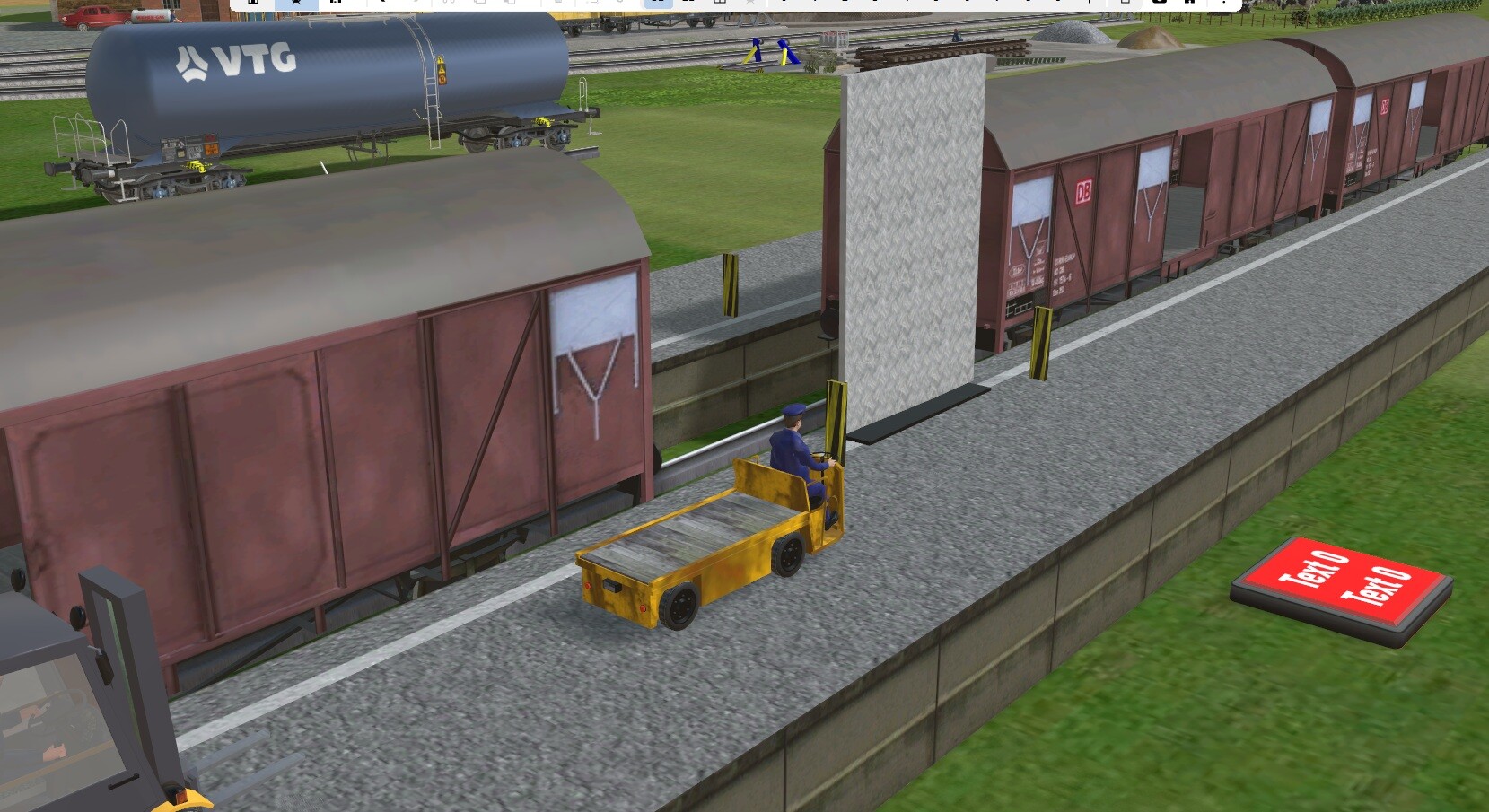 11. Hallo @EASY , ich konnte die Idee mit dem Baugleis zügig umsetzen und eine kleine Baustelle testen. Die Masten und Ausleger werden als Vorrat per Kopfdruck auf die Wagen geladen. Ist der Arbeitszug am Startpunkt angekommen, werden Masten und Ausleger ähnlich wie die Hektometertafeln gesetzt. Dir Arbeitszug bewegt sich um x cm voran, dann werden die nächsten Schritte gestartet. Natürlich kann man das mit dem Bagger und dem ORT noch animieren. Das bringt wieder etwas mehr Bewegung auf der Anlage. Gleisbau geht sicher ähnlich. Im Video ist ein kurzer Ausschnitt zu sehen. OL Bau Viele Grüße Tino