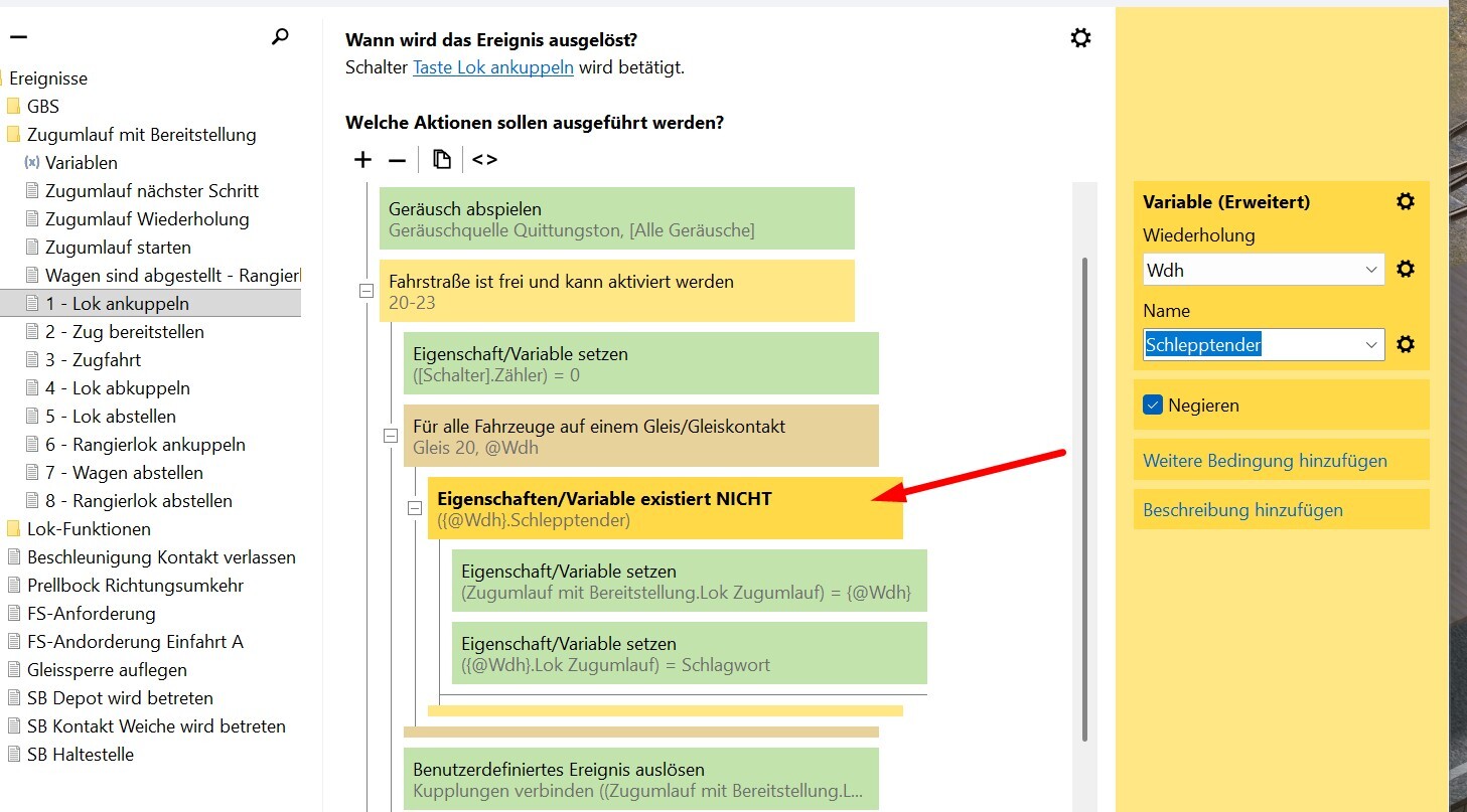 Hallo Hermann, da hast Du einen Fehler in meiner Automatik entdeckt! Genauer: Ich habe etwas nicht beachtet. Vielen Dank für den Beta-Test und die Rückmeldung! Im ersten Schritt der Automatik wird die Modul-Variable "Lok Zugumlauf" gefüttert. Hier hat sich der Schlepptender vorgedrängelt: Ich habe eine Abfrage hinzugefügt, um das zu vermeiden. Mit Lua geht das mit Sicherheit auch eleganter, aber ich bleibe hier mal bei der graphischen EV. Sorry @Goetz ! Ich habe noch weitere Problemchen im Ablauf entdeckt, diese korrigiert und die aktuelle Version hochgeladen. Mit dabei: Der Entwurf einer Tram-Erweiterung mit einer zweiten Linie. LG Alex