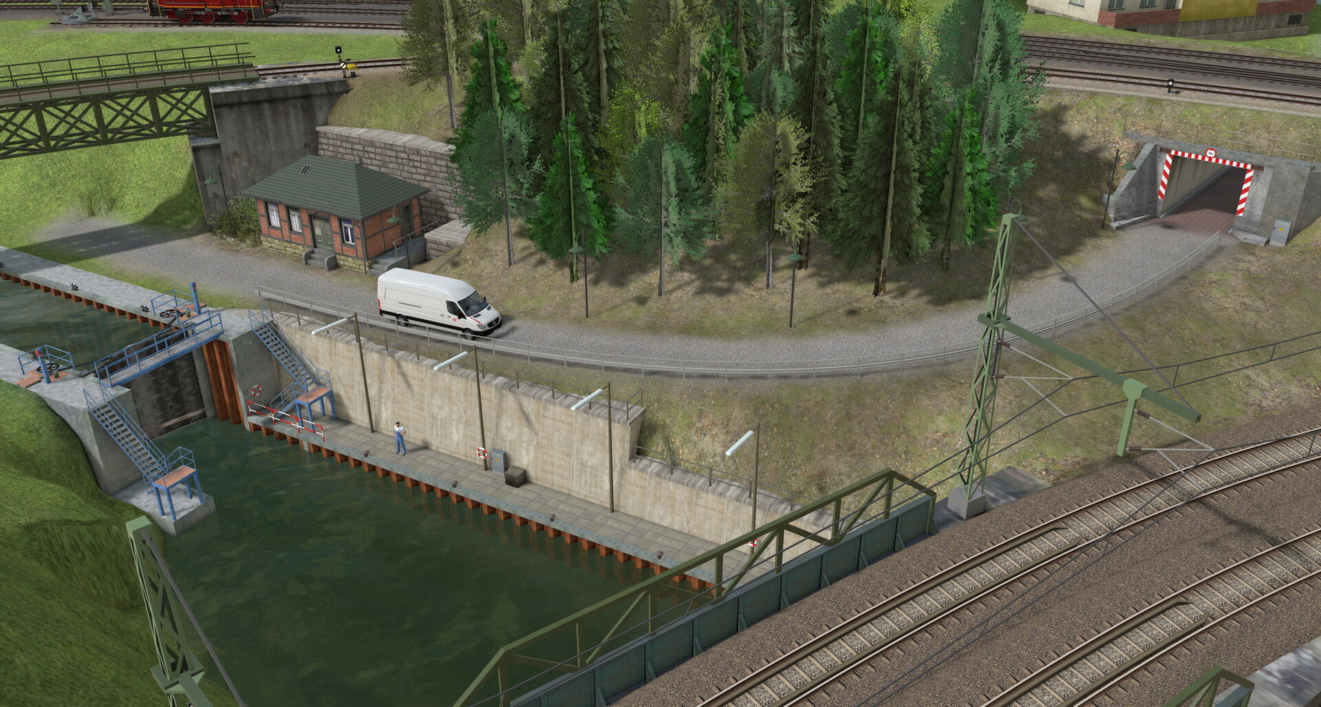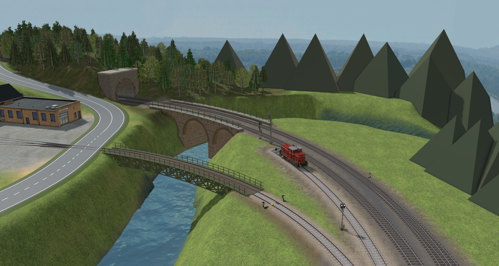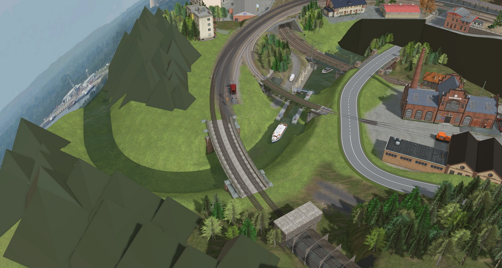 Moin! Mini-Update: Aus unserem Stream vom Samstag habe ich das zusätzliche Gütergleis noch einmal aufgegriffen... Vielen Dank an den Chat für die Idee! Story: Da war früher mal ein Gleis, das aber zwischenzeitlich zurückgebaut wurde, inkl. dem Teil der Straßenbrücke: Das Gleis führte bergab in Richtung Fluss und dann zum Hafen. Beim Bau der zweigleisigen Umgehungsstrecke war das Gleis jedoch im Weg und wurde abgebaut. Nur ein paar Reste sind noch zu sehen... LG Alex- Oberleitung - Drahtlaenge vs Radius